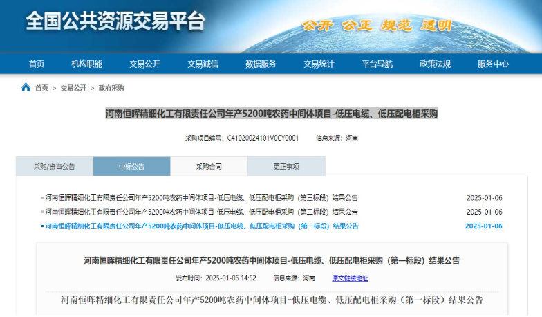 2025新年伊始,胜华电缆集团传来中标喜讯