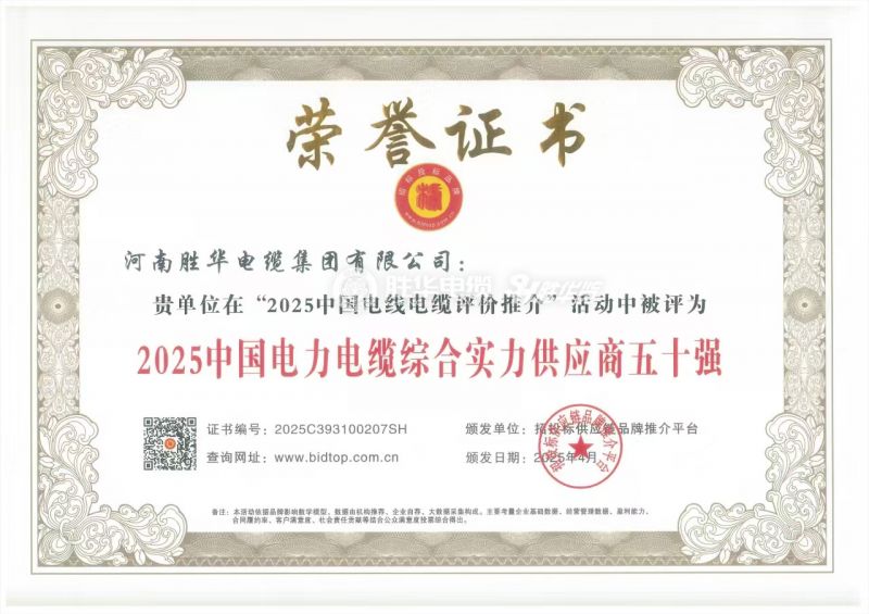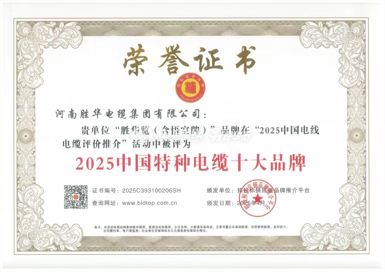 河南胜华电缆集团有限公司是一家集专业研发、生产、销售、服务于一体的电线电缆高科技民营企业。近年来,企业获得高新技术企业、中国机械500强、创新发展工作先进企业、河南省节能减排科技创新示范企业、河南省信用建设示范单位、AAA信用等级、河南省质量诚信AA级企业、“守合同重信用”企业等众多荣誉称号。