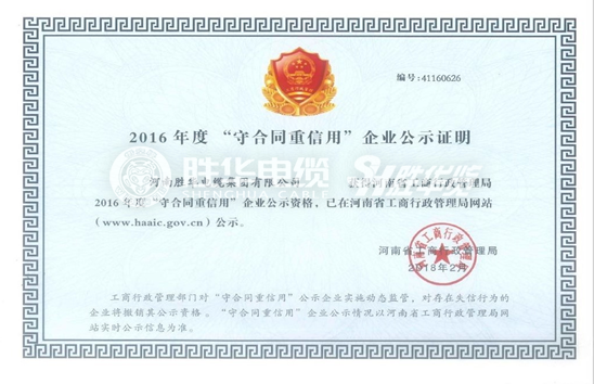 2016年度“守合同重信用”企业公示证明