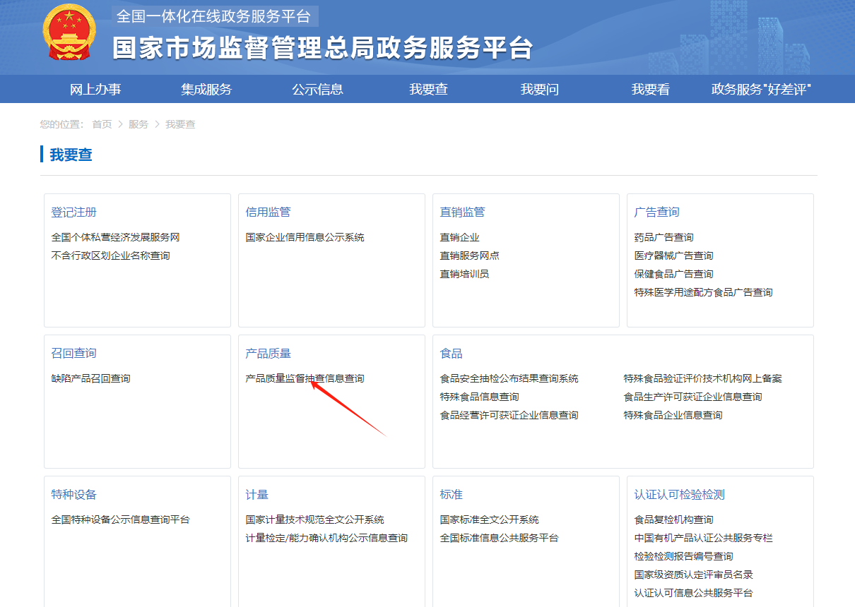 产品质量国家监督抽查不合格产品查询方法