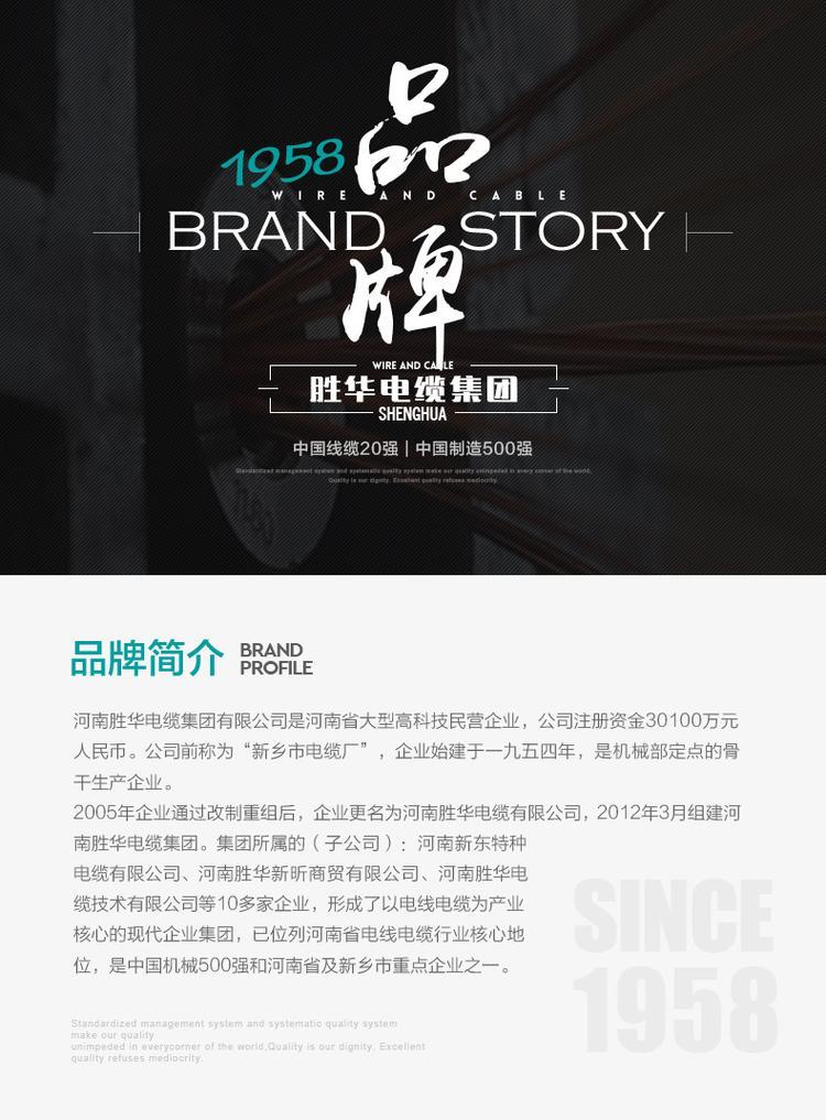 河南胜华电缆集团有限公司是一家集专业研发、生产、销售、服务于一体的电线电缆高科技民营企业。近年来,企业获得高新技术企业、中国机械500强、创新发展工作先进企业、河南省节能减排科技创新示范企业、河南省信用建设示范单位、AAA信用等级、河南省质量诚信AA级企业、“守合同重信用”企业等众多荣誉称号。